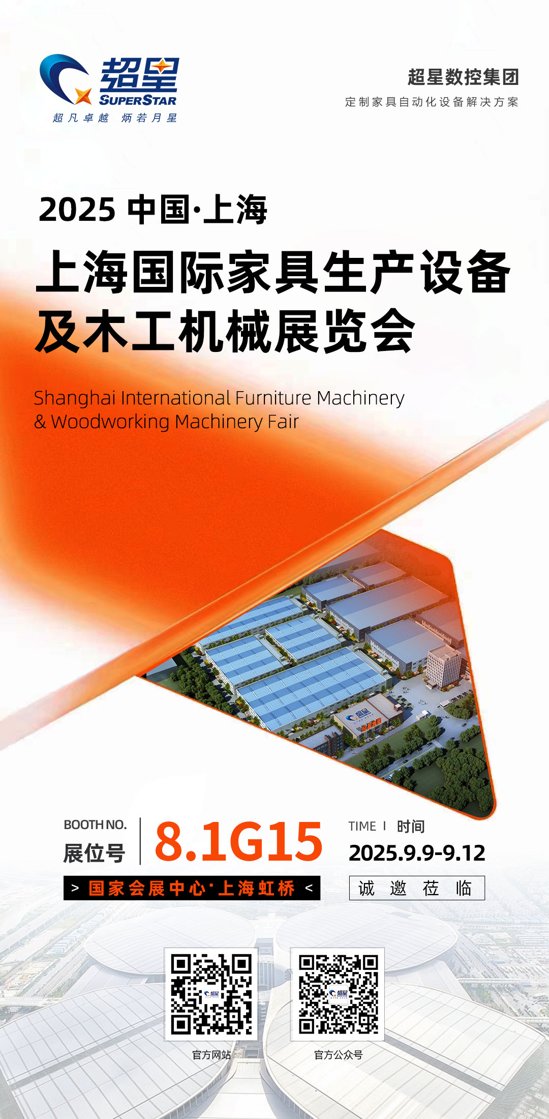 誠(chéng)邀木工機(jī)械行業(yè)的從業(yè)者、家具生產(chǎn)企業(yè)以及對(duì)數(shù)控設(shè)備感興趣的各界人士,于2025年9月9日光臨上海展會(huì)超星數(shù)控展位,共同探索木工機(jī)械的未來(lái)發(fā)展趨勢(shì),感受超星數(shù)控帶來(lái)的創(chuàng)新魅力,攜手共創(chuàng)輝煌。